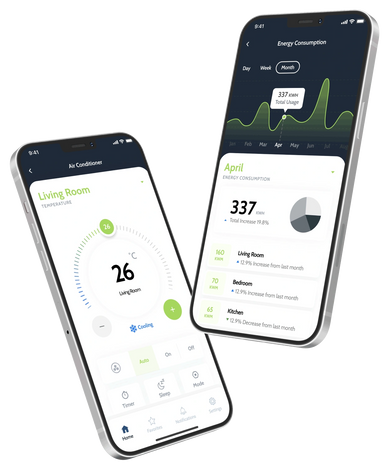 Our modern heat pumps and centralized air conditioning are fully controlled by the SmartONE system. Integrated from the start, there's no need for additional configuration by the resident. You can even make adjustments on the go from the mobile application.